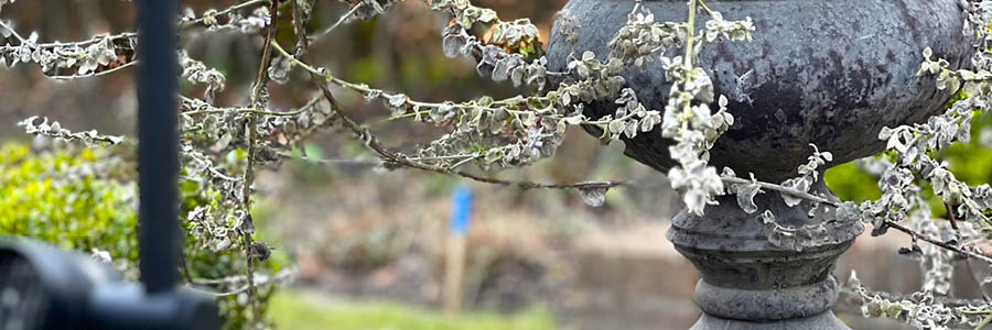 Let ook op je potten: niet-vorstbestendige exemplaren kunnen barsten zodra het gaat vriezen, vooral als er nog vocht in de aarde zit. Haal ze op tijd naar binnen of zet ze op een beschutte plek, bijvoorbeeld onder een afdak.